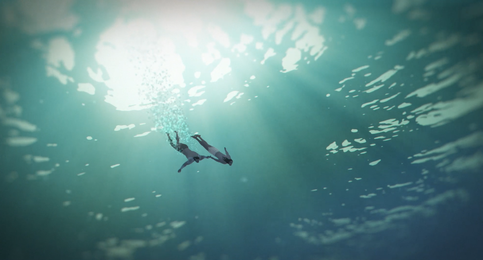 That’s why we set Falling in an imaginary world, drawing from myths and legends, places and peoples across space and time, in which the charactersʻ mutual magnetism is not scorned but celebrated. And as longtime residents of Hawai’I, who spend a lot of time in the ocean, we wanted the underwater scenes in the film to reflect the sense of freedom and renewal we feel when submerged, away from all the constraints of life above.